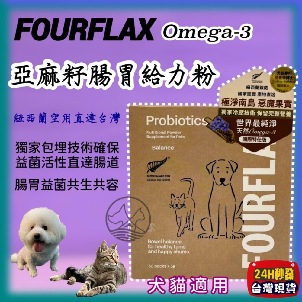✪小福袋✪FOURFLAX 紐西蘭 Omega-3➤ 亞麻籽腸胃給力粉 隨行包(益生菌) 30包/盒➤ 犬 狗 貓