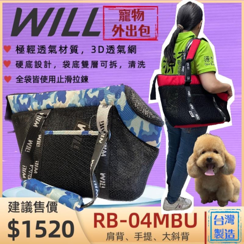 🍀小福袋🍀WILL《 RB-04H迷彩➤黑網➤藍色》 WILL 設計+寵物 極輕超透氣外出包可肩揹/大斜揹 狗 貓