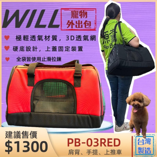 🎀小福袋🎀WILL《PB03紅色款 》極輕/超透氣網/硬底系列 外出包/外出籠/肩背包 -犬貓專用 單獨需一件運費
