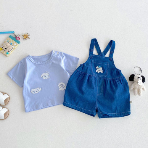 狗狗T恤+可愛牛仔吊帶褲