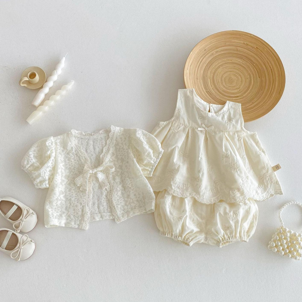 蝴蝶結娃娃衫套裝+蕾絲小外套