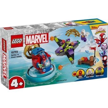LEGO 10793 是 LEGO Marvel 系列中的 Spidey vs. Green Goblin 模型,靈感來自 Disney+ 節目《Spidey and His Amazing Friends》。 這款模型適合 4 歲及以上的孩子和 Marvel 迷收藏、建造和展示。 這款 LEGO 套裝包含: Spidey 小人偶,配有旋轉螺旋槳和可開啟駕駛艙的飛行器。 Green Goblin 小人偶,配有南瓜投射器的滑翔機。 Ghost-Spider 小人偶,配有大型金色蜘蛛網元素。 Spidey 的機器人朋友 Trace-E、海洋配件和一隻可愛的小螃蟹。 這款模型設計簡單,適合年幼的孩子,能夠幫助他們建立信心,提升解決問題的能力,並激發無盡的想像力。