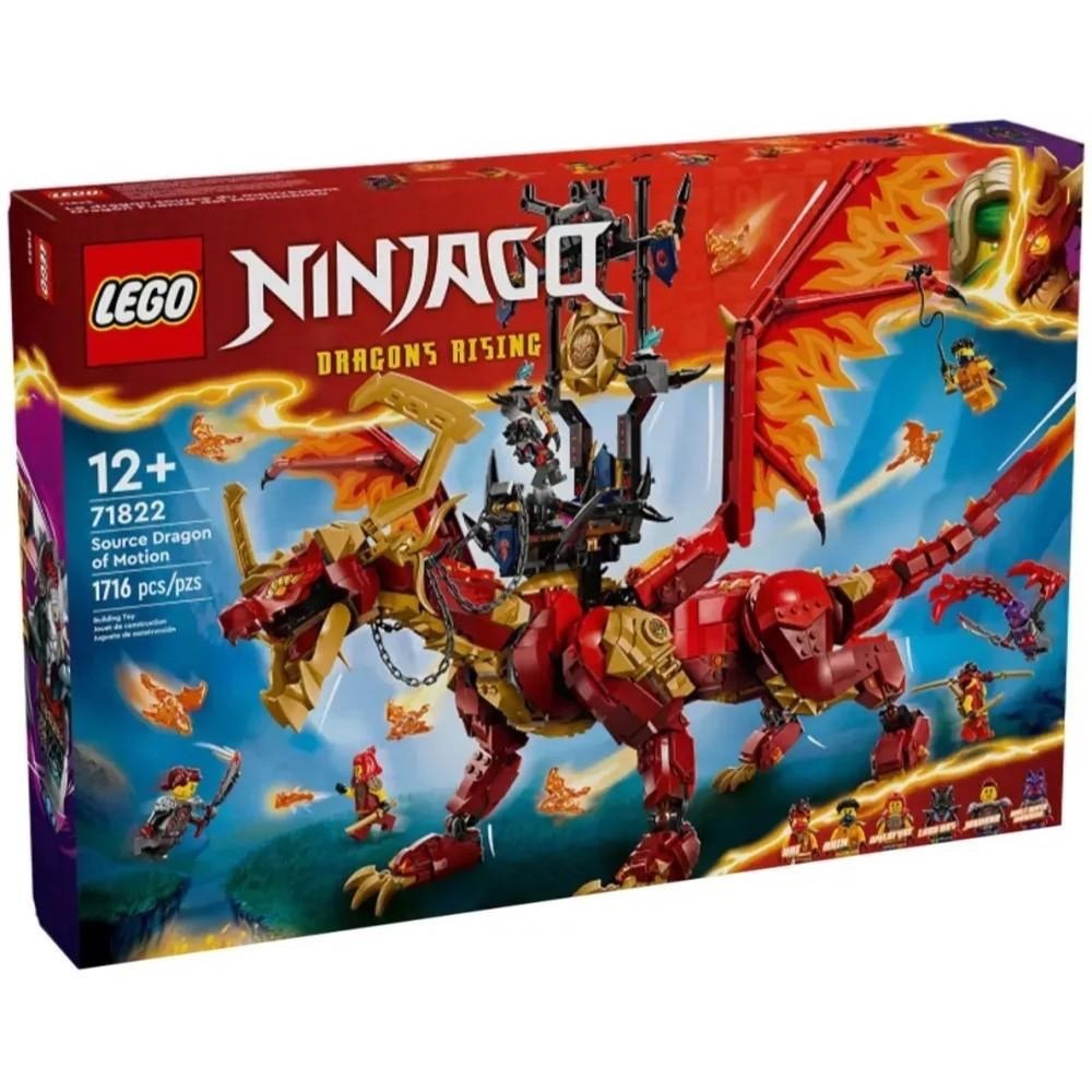LEGO 71822 動態來源龍(Source Dragon of Motion) 吧!這是一個來自樂高® Ninjago 系列的精彩套裝,讓你能夠重現《NINJAGO® Dragons Rising》電視節目第 2 季中的翱翔空中冒險。 產品描述:LEGO 71822 動態來源龍是有史以來最大的樂高®龍玩具,擁有可移動的腿、尾巴、臀部、下巴、頭部、頸部和大翅膀。它的背上還有一個鞍座,並附有 6 條較小的靈龍。 特點:可動性:這款來源龍模型的可動性非常出色,你可以調整它的各個部位,讓它擺出不同的飛行姿勢。 更多龍!:套裝還包含了 6 隻較小的靈龍,讓你的角色能夠在空中展開刺激的冒險。 NINJAGO® 小人偶:這個套裝附送了 6 個 NINJAGO® 小人偶,包括 Kai、Wyldfyre、Arin、Lord Ras、Jordana 和 Wolf Mask Warrior。 如果你是忍者迷、樂高愛好者或喜歡收藏獨特玩具的人,LEGO 71822 動態來源龍絕對值得你收藏。讓我們一起進入奇幻的忍者世界,展開驚險刺激的冒險吧!🐉