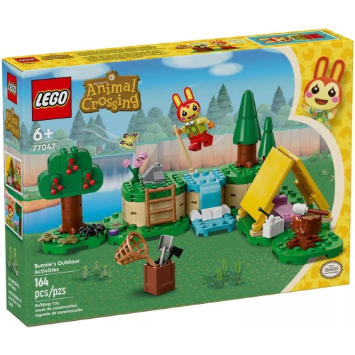 LEGO 77047 是一款 LEGO Animal Crossing 系列的組合,名為 Bunnie 的戶外活動 (Bunnie's Outdoor Activities)。 這套組合適合 6 歲及以上的孩子,提供了一個充滿創意的遊戲場景: Bunnie 的帳篷:這個模型包括一個可搭建的帳篷,內部可以打開,方便小人偶進入。 戶外活動場景:這個場景包括一條小河和一些戶外活動配件,如網子、鏟子和斧頭,讓孩子們可以模擬各種戶外活動。 小人偶:這套組合包括 Bunnie 的小人偶,讓孩子們可以創造出各種有趣的故事。 這套 LEGO 組合包含 164 塊積木,讓孩子們可以享受建造和遊玩的樂趣,並激發他們的創造力和想像力。