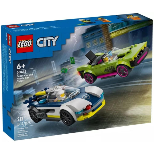 LEGO® City 系列的「警車與肌肉車追逐戰」(Police Car and Muscle Car Chase,編號 60415)是一款充滿動感的組合,適合 6 歲以上的孩子。這組套件包含 213 塊積木,讓孩子們可以組裝一輛警用攔截車和一輛逃逸用的肌肉車,並附有警察和罪犯的迷你人偶,為角色扮演和故事創作增添樂趣。 警用攔截車設計時尚,配備酷炫的尾翼,適合高速追逐;而罪犯的肌肉車則擁有強勁的引擎罩進氣口,讓追捕過程更具挑戰性。孩子們可以將迷你人偶放入各自的車輛中,展開無限創意的遊戲和故事情節。