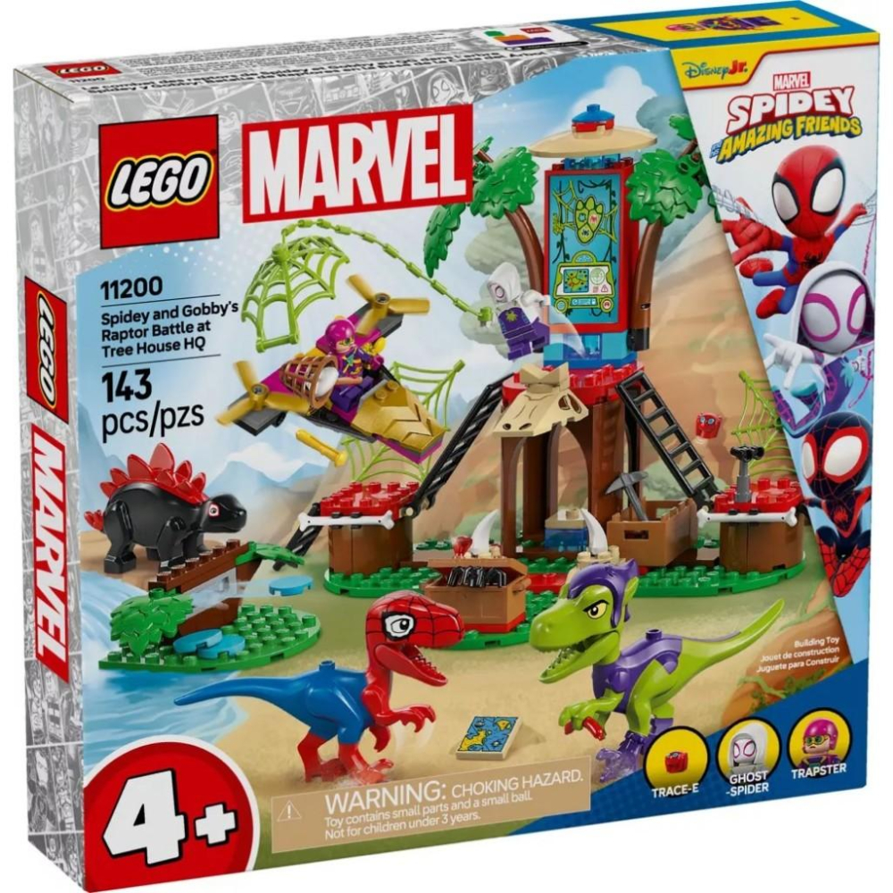 LEGO 11200 是 LEGO Marvel 系列中的 Spidey and Gobby's Raptor Battle at Tree House HQ 模型,靈感來自 Disney+ 節目《Spidey and His Amazing Friends》。 這款模型適合 4 歲及以上的孩子和 Marvel 迷收藏、建造和展示。 這款 LEGO 套裝包含: 一個樹屋模型,具有三個平台。 三個小人偶:Trapster、Ghost-Spider 和 Trace-E。 可建造的恐龍模型:Spidey-Rex、Gobby-Raptor 和 Dino-Spin。 Trapster 的飛行器。 這款模型設計簡單,適合年幼的孩子,能夠幫助他們建立信心,提升解決問題的能力,並激發無盡的想像力。