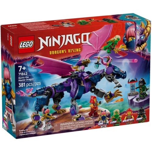 LEGO 71842「 龍長老朗圖」(Rontu the Master Dragon)是一款來自 LEGO Ninjago 系列的模型,靈感來自《旋風忍者 猛龍崛起》第三季,讓玩家可以重現忍者的史詩戰鬥場景。 設計與特色 - 靈活的飛龍模型:這款模型擁有可動的尾巴、腿部、龍翼、頭部與下巴,並可在龍背上放置 2 個迷你人偶。 - 互動細節:龍翼下方配有凸粒發射器,並包含一座迷你神龛,內藏秘密信息,可由勞埃德解讀。 - 迷你人偶:內含勞埃德、索拉、懷爾德菲勒與厄運大師扎克特 LEGO Ninjago 樂高娃娃,並配有忍者武器配件。 - 數位建造體驗:可搭配 LEGO Builder 應用程式,讓玩家以 3D 視角檢視模型並追蹤拼砌進度。 規格與尺寸 - 積木數量:包含 381 塊積木。 - 完成尺寸:龍長老朗圖高約 13 公分。 適合對象 - 適合 7 歲以上的玩家,特別是 LEGO Ninjago 粉絲與奇幻冒險愛好者。 - 是一份絕佳的禮物選擇,適合生日或節日送禮。 LEGO 71842「龍長老朗圖」是一款充滿忍者精神與互動性的模型,適合 LEGO Ninjago 粉絲展示與拼砌。