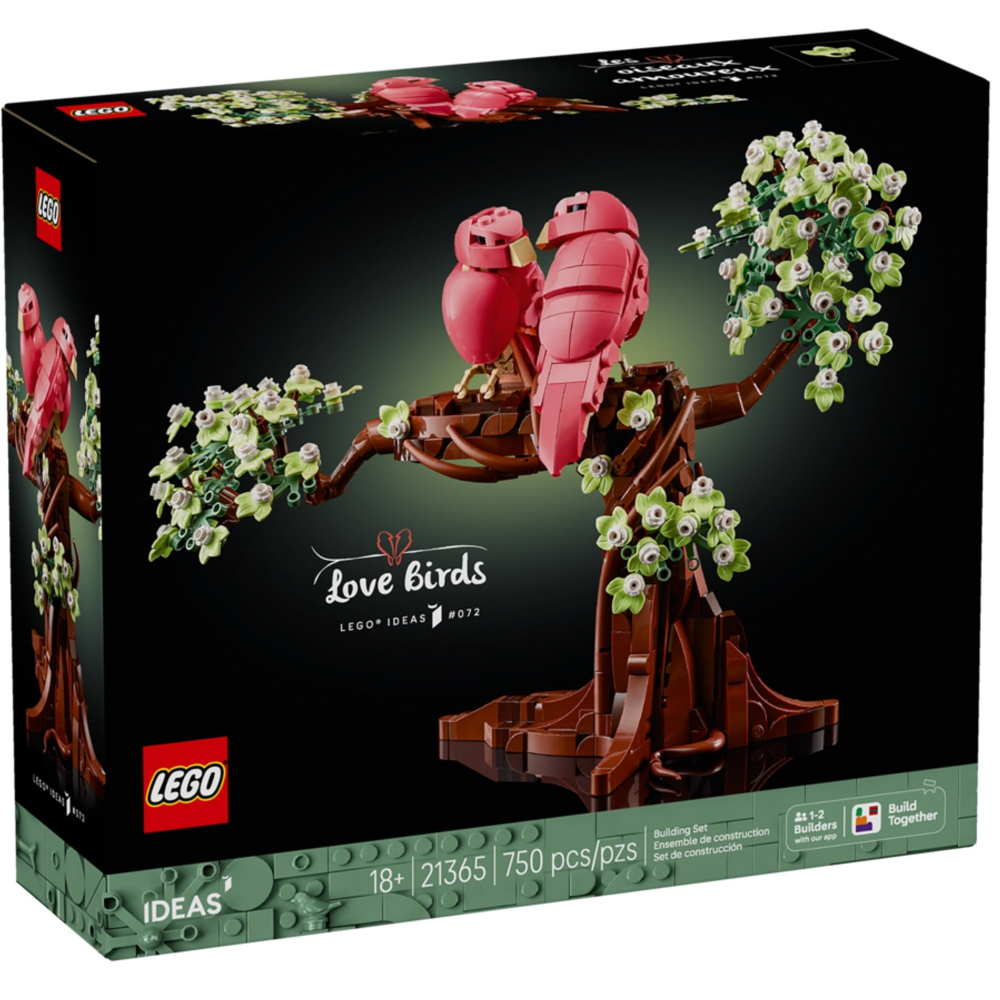 LEGO® Ideas 21365「情侶鸚鵡 (Love Birds)」是一款 750 片的成人收藏級套組。它以兩隻珊瑚粉色鸚鵡為主題,栖息在春意盎然的樹枝上,從背面看時能拼出心形,象徵愛與友誼。