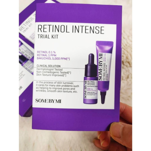 A醇 視黃醇 強效抗皺 迷你組合(眼霜10ml + 精華液10ml) 𝐑𝐄𝐓𝐈𝐍𝐎𝐋 𝐈𝐍𝐓𝐄𝐍𝐒𝐄 𝐀𝐃𝐕𝐀𝐍𝐂𝐄𝐃 𝐓𝐑𝐈𝐏𝐋𝐄 𝐀𝐂𝐓𝐈𝐎𝐍 𝐄𝐘𝐄 𝐂𝐑𝐄𝐀𝐌 ① 1~2 週一天使用一次, 在晚上保養時跟著保濕產品少量使用 *超敏感肌膚建議兩天使用一次 ② 3 週後肌膚慢慢適應, 開始增加使用量 給肌膚適應的時間的話, 可以體驗視黃醇帶來的柔嫩感 ③ 防曬乳 視黃醇對太陽光線敏感, 所以一定要在‼️晚上使用‼️ 白天外出時一定要塗防曬指數 SPF 50以上的防曬乳 ☑️生產商:SOME BY MI ☑️有效期限: 2027/06 ☑️產地: 韓國 ☑️貨源: 官方網站 https://s-cf-tw.shopeesz.com/file/tw-11134208-7r98r-lveqf0b5s6lqfe