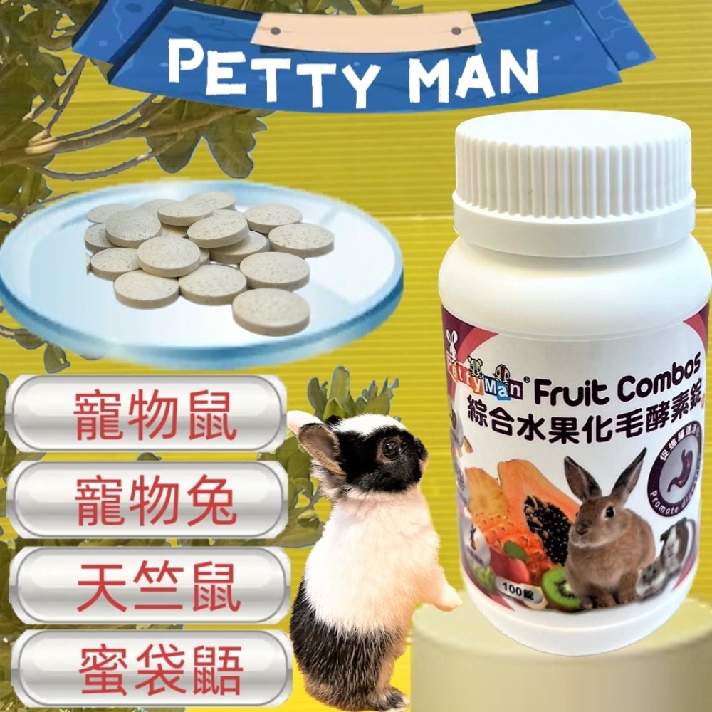 ✪四寶的店✪Petty Man 綜合水果化毛酵素錠 100錠 健康補給 小動物 鼠 化毛 蜜袋鼯 兔 木瓜鳳梨酵素丸