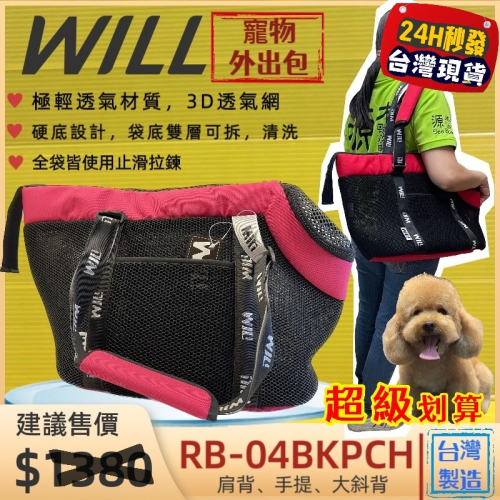 ✨四寶的店✨附發票~RB 04 桃色包➤黑網➤WILL 手提包 側背包 極輕超透氣外出包可肩揹/大斜揹 犬 狗 貓