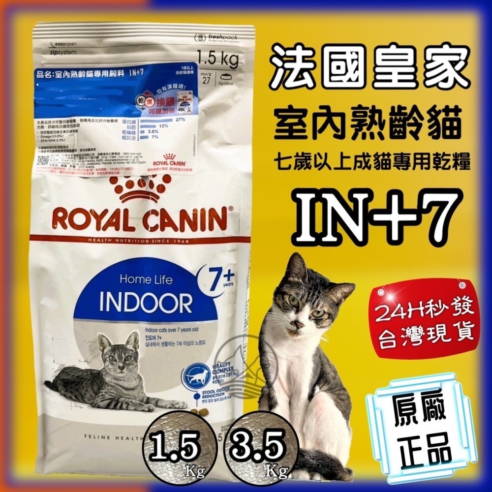 ✪四寶的店✪法國 皇家《IN+7 室內熟齡貓 1.5公斤/包》ROYAL CANIN 健康呵護系列 貓 飼料 乾糧