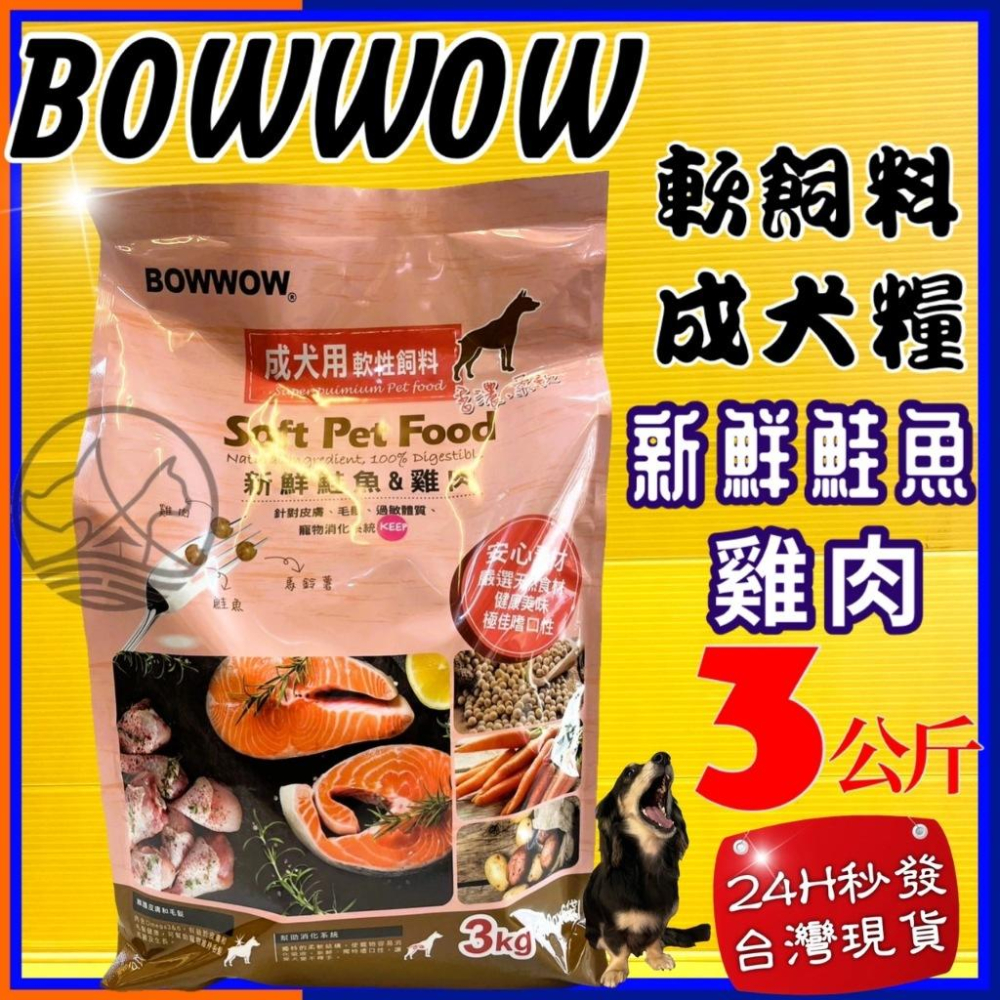 ✪四寶的店✪BOWWOW 成犬用 軟性飼料 鮭魚&雞肉 犬糧 軟飼料 3kg 嗜口性佳 濕糧