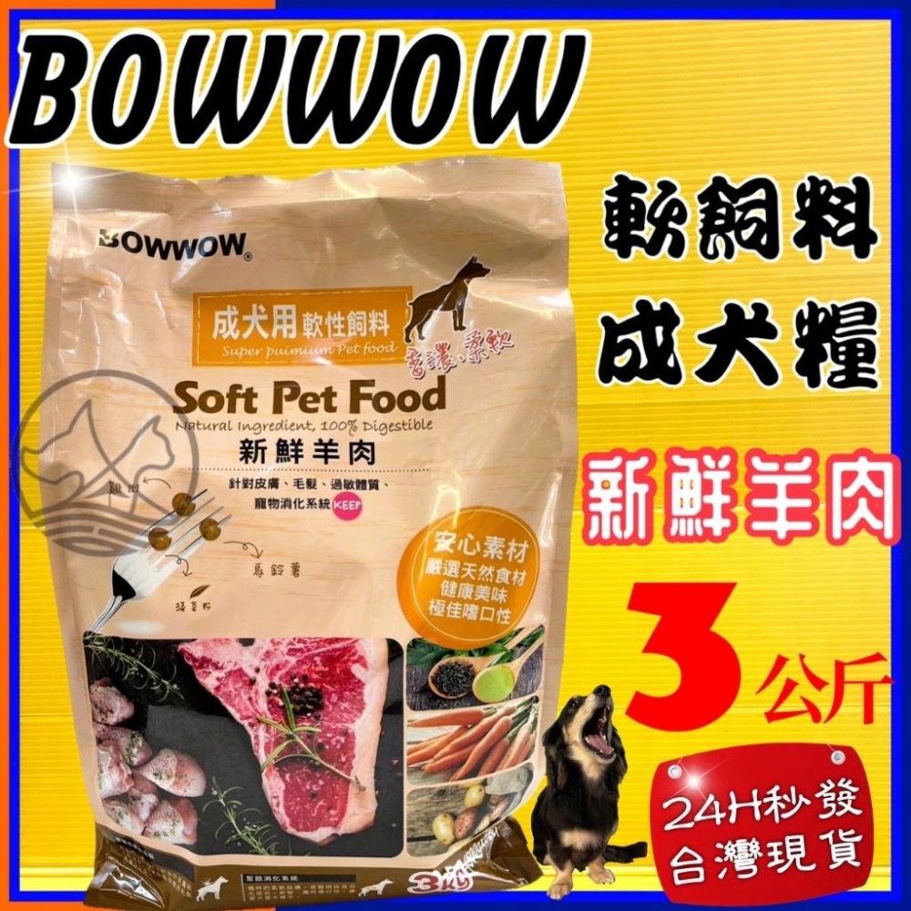 ✪四寶的店✪BOWWOW 成犬用軟性飼料 羊肉 犬糧 軟飼料 3kg 嗜口性佳