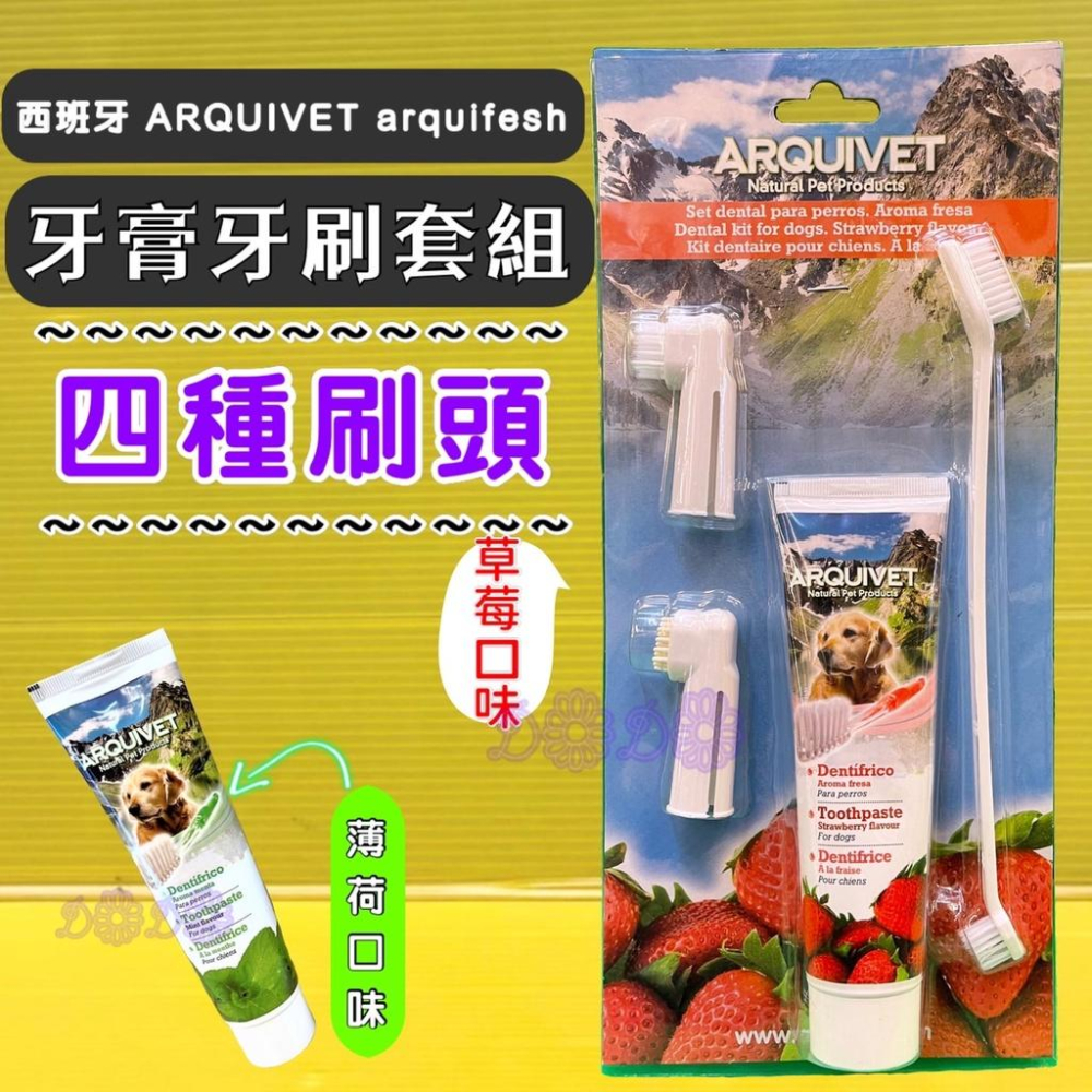 Arqul fresh 西班牙【香甜草莓愛犬牙膏+牙刷組 100g】狗 犬 護齒 清潔 ARQUIVET⚜️四寶的店⚜️