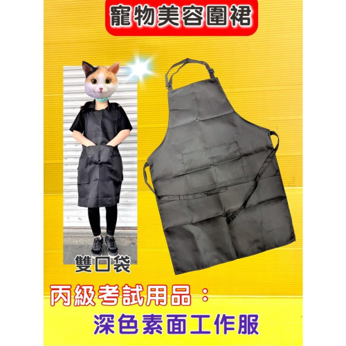 👍四寶的店👍寵物美容考試檢定用品 黑色 素面 防潑水 圍裙 犬 狗 剃毛 剪毛 美髮 工作服 源杏 雙口袋 無標誌