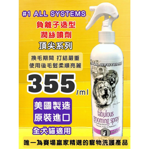 👍四寶的店👍頂尖➤負離子造型潤絲噴劑 355ml/瓶➤All System 美國 專業 寵物 犬 狗 貓~附發票