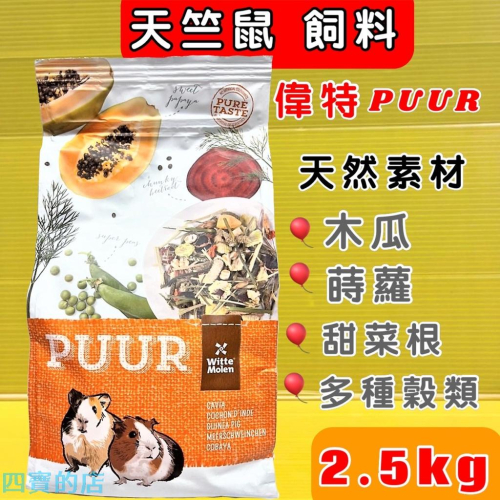 ✪四寶的店✪附發票~荷蘭 偉特 ➤純天然天竺鼠 飼料 2.5kg/包➤ PUUR 水果大餐 主食 綜合 寵物 小動物