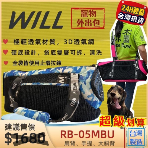 👍四寶的店👍附發票~RB-05 迷彩➤黑網➤藍色 WILL 設計+寵物 極輕超透氣外出包可肩揹/大斜揹 犬 狗 貓
