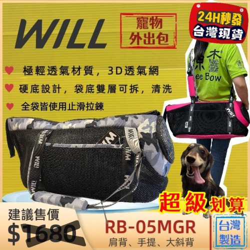 ✨四寶的店✨附發票~RB 05 迷彩➤黑網➤灰色 WILL 設計+寵物 極輕超透氣外出包可肩揹/大斜揹 犬 狗 貓