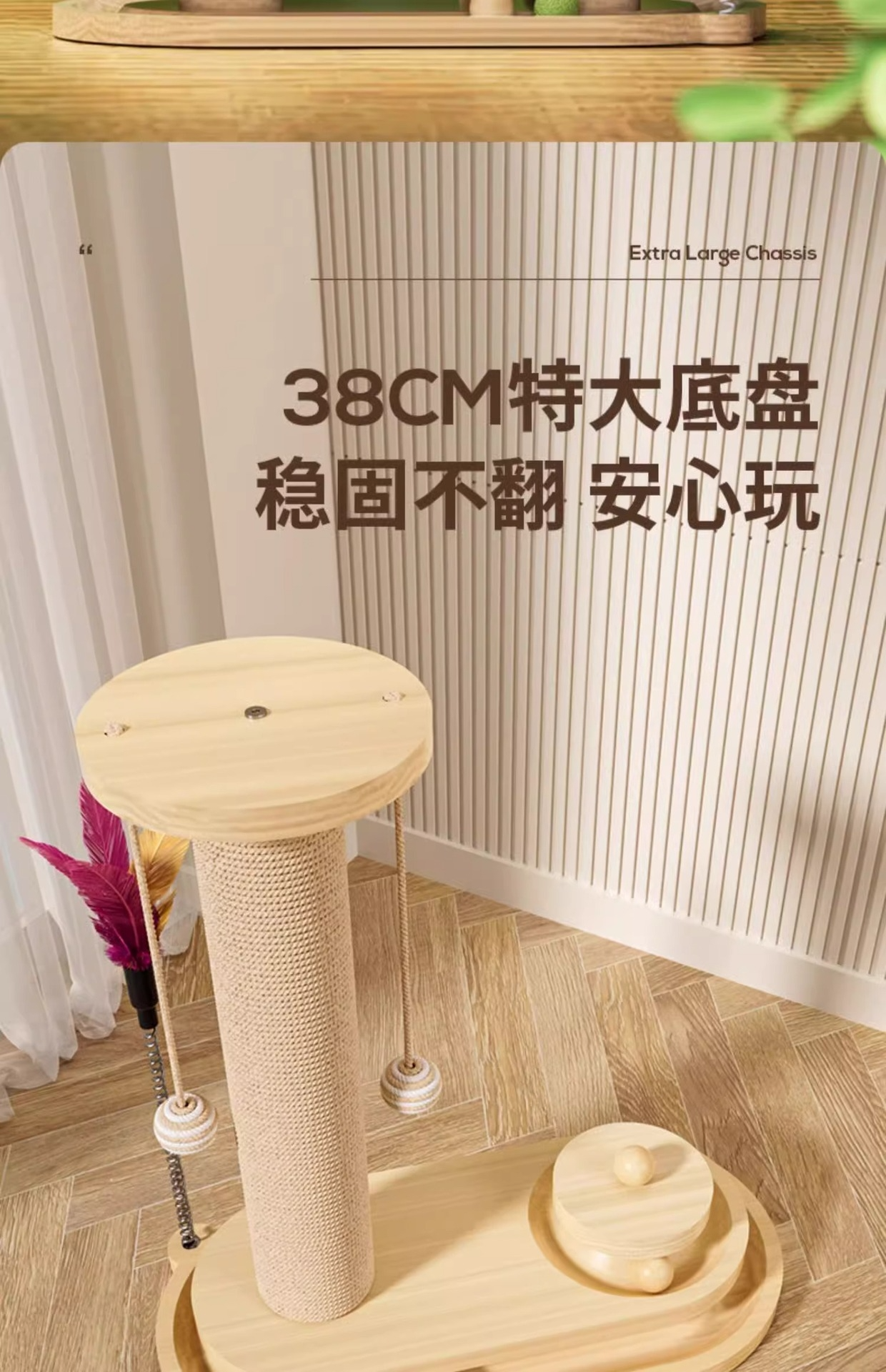 四合一功能設計:貓抓柱 + 轉盤玩具 + 小型貓爬架