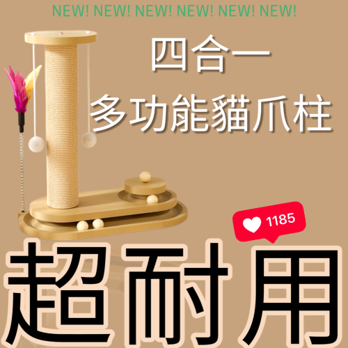 NEW!熱銷破千讚四合一多功能貓抓柱|超耐用升級款多功能立式貓抓柱劍麻貓爬架一體轉盤玩具|耐抓不掉屑 貓咪玩樂首選