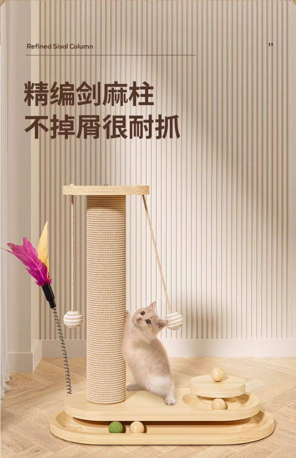 天然劍麻材質:高耐磨不掉屑,保護貓咪爪與家具