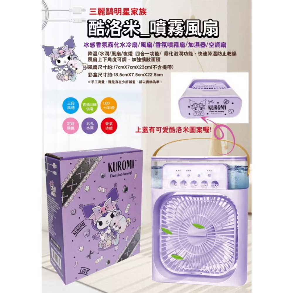 《正版》酷洛米USB噴霧風扇系列 庫洛米 升級版 五孔噴霧風扇 可定時 夜燈 Type-C插電 降溫風扇 水冷扇 加濕風
