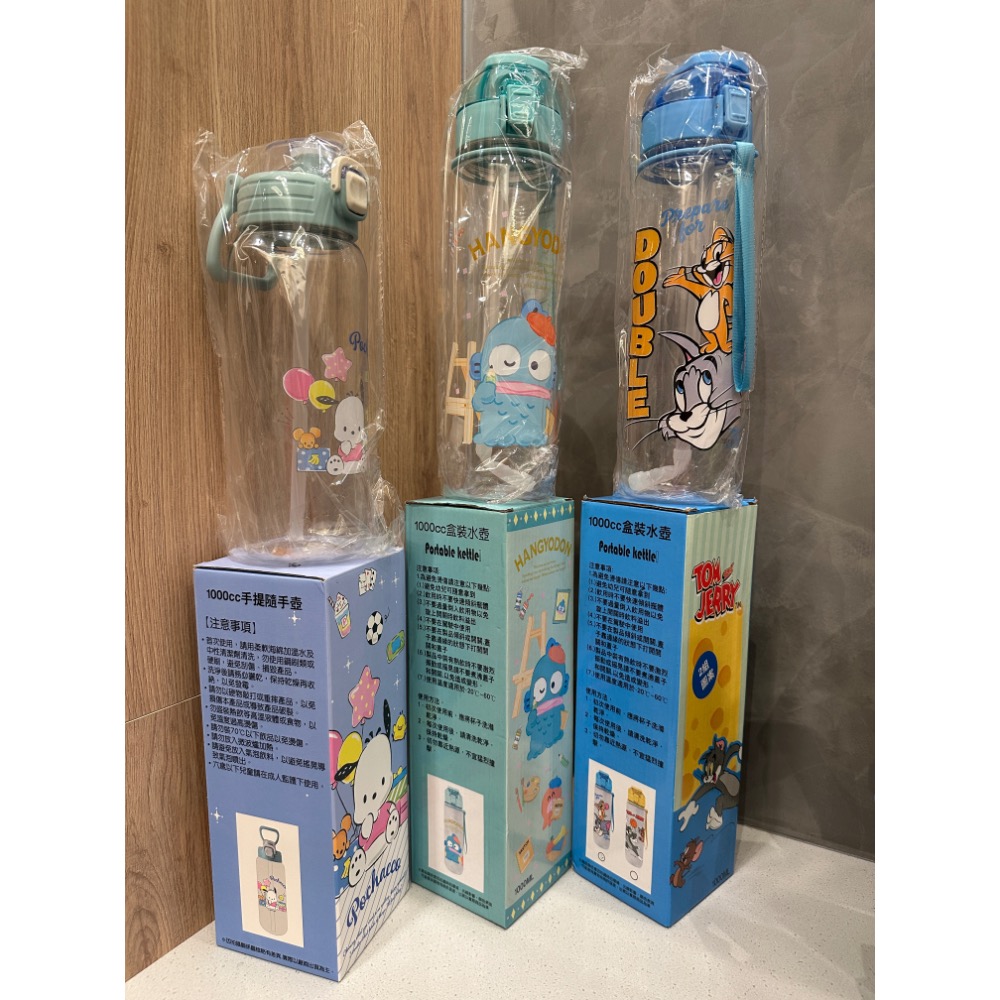 《正版》三麗鷗醜魚漢頓 湯姆貓與傑利鼠1000ml 手提隨手壺 帕恰狗大容量水壺 有吸管Tom & Jerry