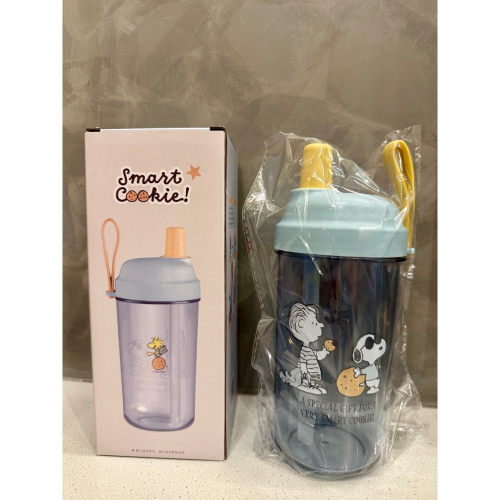 《正版》史努比 餅乾輕巧手提吸管冷飲杯 簡約透明水壺,環保飲料杯