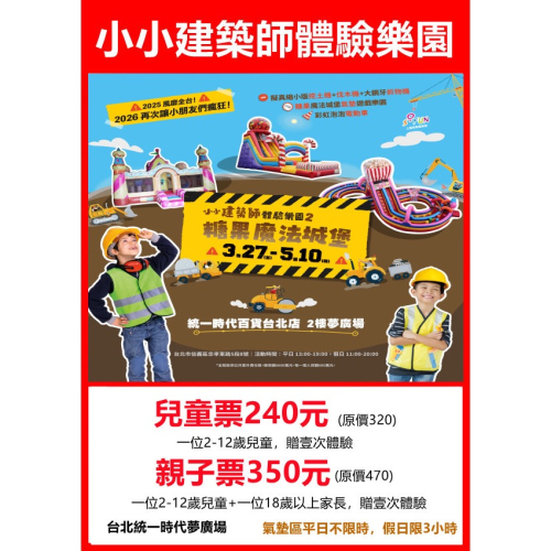 【台北】小小建築師體驗樂園2 糖果魔法城堡 入園體驗券/紙本票券 ★ 期限為2026/03/27(五)~2026/05/10(日)