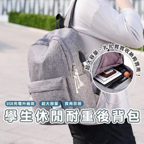 升級版USB充電學生耐重後背包 休閒筆電書包 防水多隔層商務雙肩
