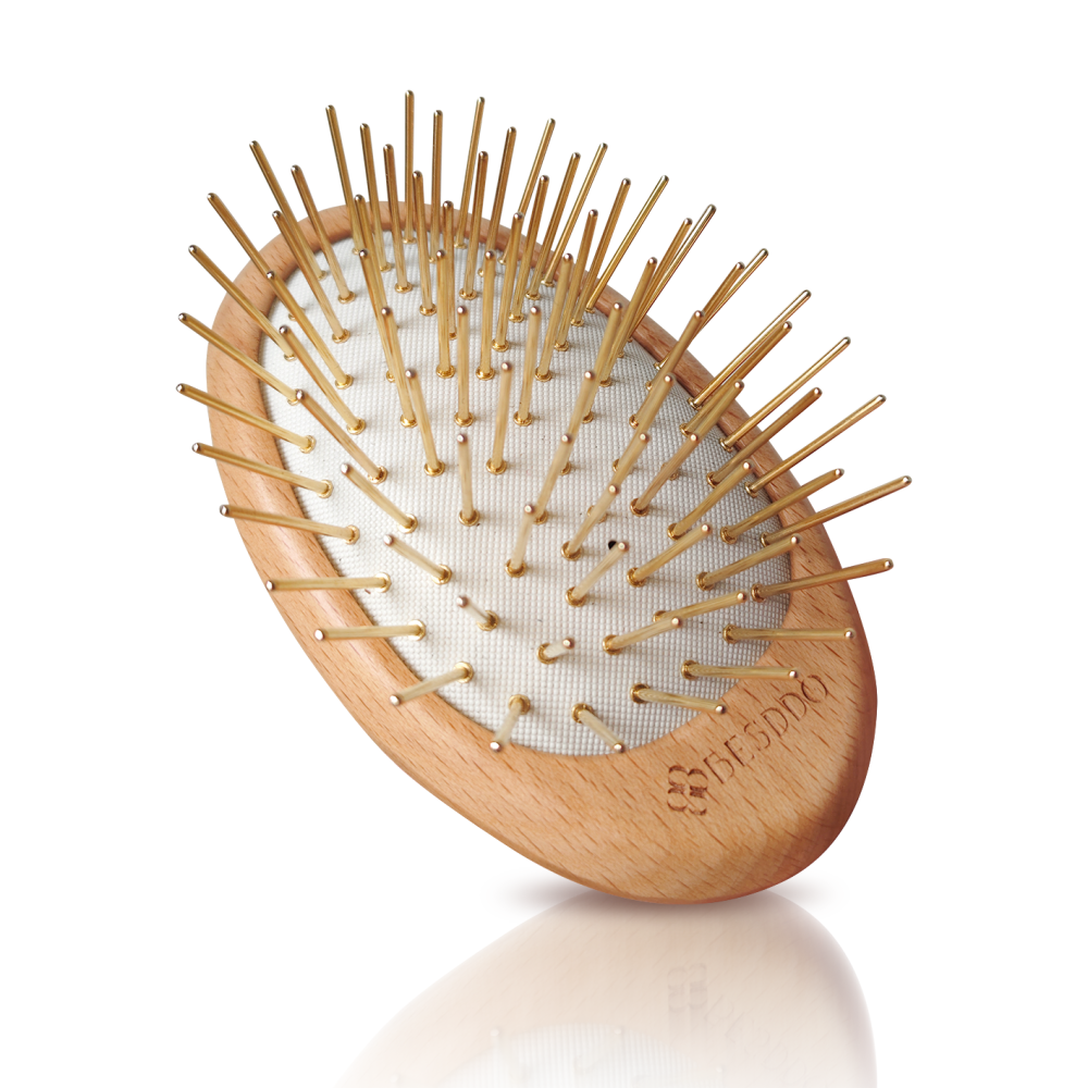 材質:北歐天然山毛櫸、天然橡膠、24K鍍黃金碳鋼梳針
