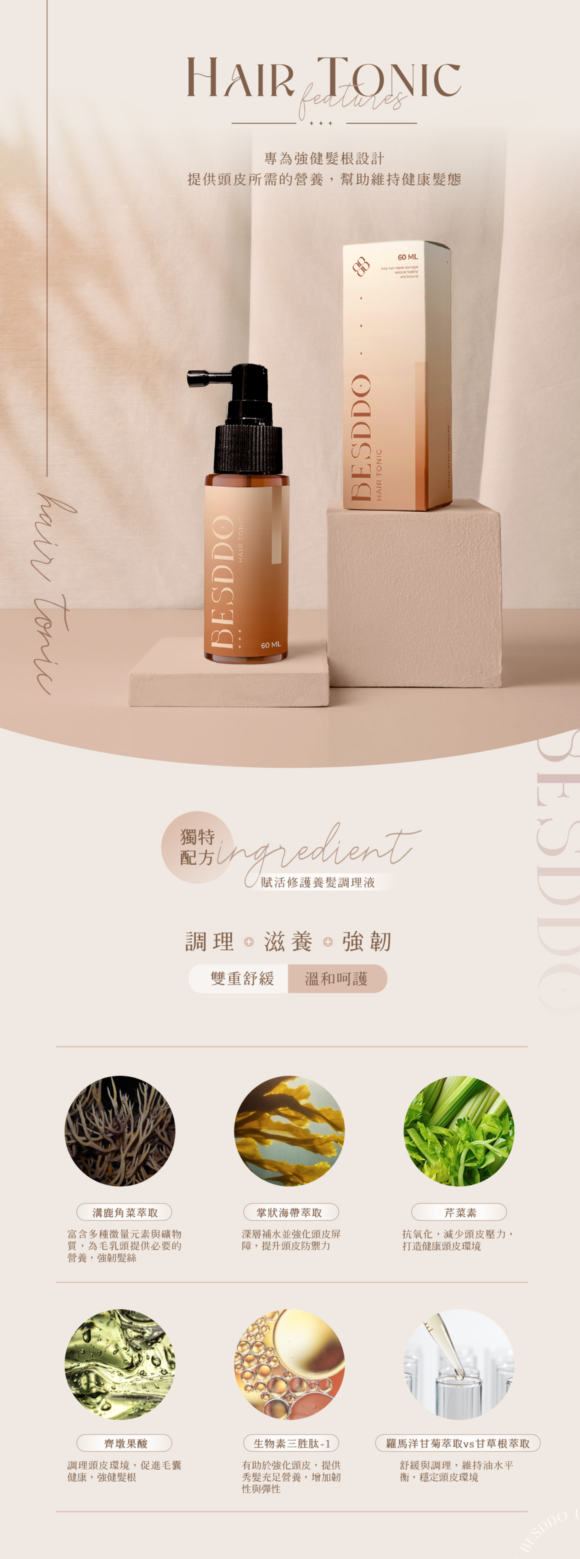 養髮調理液, 養髮噴霧, 髮根調理, 頭皮舒緩, 控油頭皮精華, 頭皮養護推薦, 髮絲強韌, 髮根蓬鬆推薦, 敏感頭皮可用, 台灣製養髮產品, BESDDO 養髮推薦, 蓓詩垛 頭皮保養, 頭皮精華