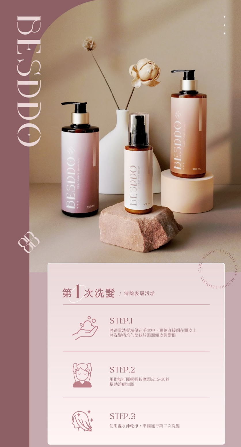 養護髮絲:可搭配【水潤深層護髮素】或【免沖洗護髮精華】