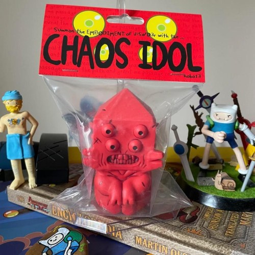 CHAOS IDOL GOLB Adventure Time 絕版美式公仔 Sofubi, short for "soft vinyl" (ソフビ - sofutobiniiru), is a style of Japanese collectible toys made from soft, hollow vinyl that are often inspired by classic kaiju (monster) and tokusatsu (live-action special effects) characters. These toys, which originated in Japan in the 1960s, are now highly sought after by collectors for their unique designs, handcrafted details, and vintage aesthetic.  https://s-cf-tw.shopeesz.com/file/tw-11134208-81ztc-mg8x8andu70pf7 Sofubi,是「軟膠」(ソフビ - sofutobiniiru)的縮寫,是一種由柔軟空心乙烯基製成的日本收藏玩具,其靈感通常來自經典的怪獸(kaiju)和特攝(tokusatsu)角色。這些玩具起源於1960年代的日本,如今因其獨特的設計、手工細節和復古美感而備受收藏家的追捧。