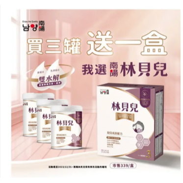 買3罐→林貝兒 *3號幼兒成長配方800g,立即贈280g隨身包*1盒 (內含14gx20條)