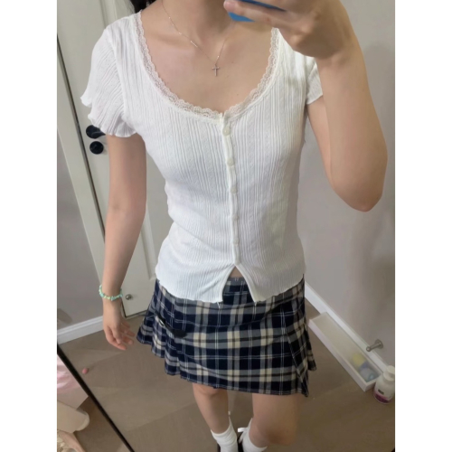【BM】Zelly Eyelet Top 蕾絲排扣捲邊短袖