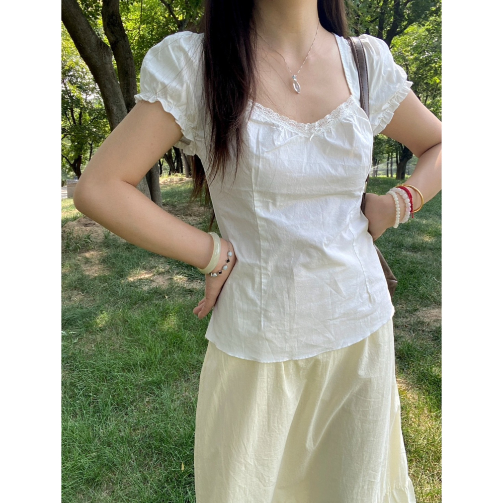 【BM】Odette Lace Top 方領蕾絲綁帶泡泡袖上衣