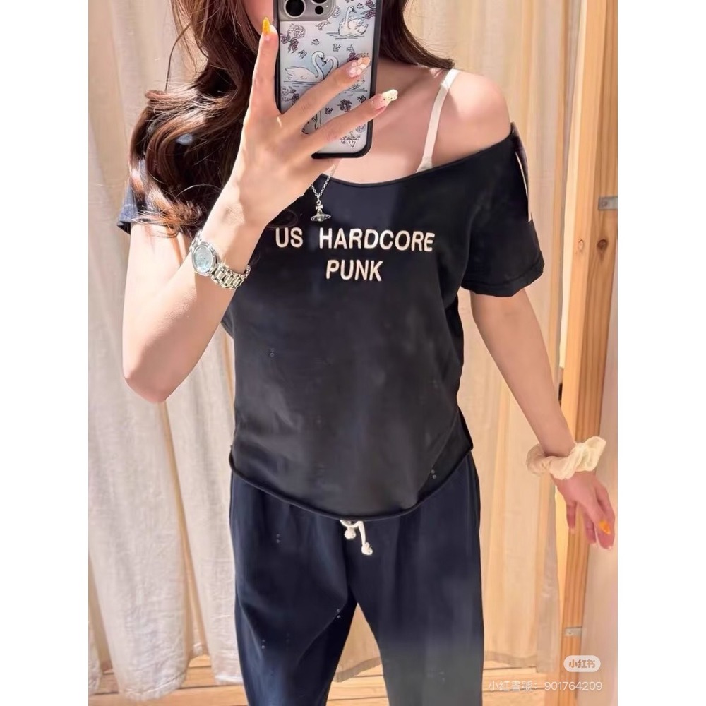 【BM】Robyn Us Hardcore Punk Top 美式斜肩字母短袖