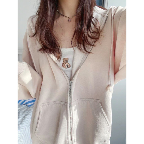 【BM】Christy Hoodies 杏粉美式連帽大外套