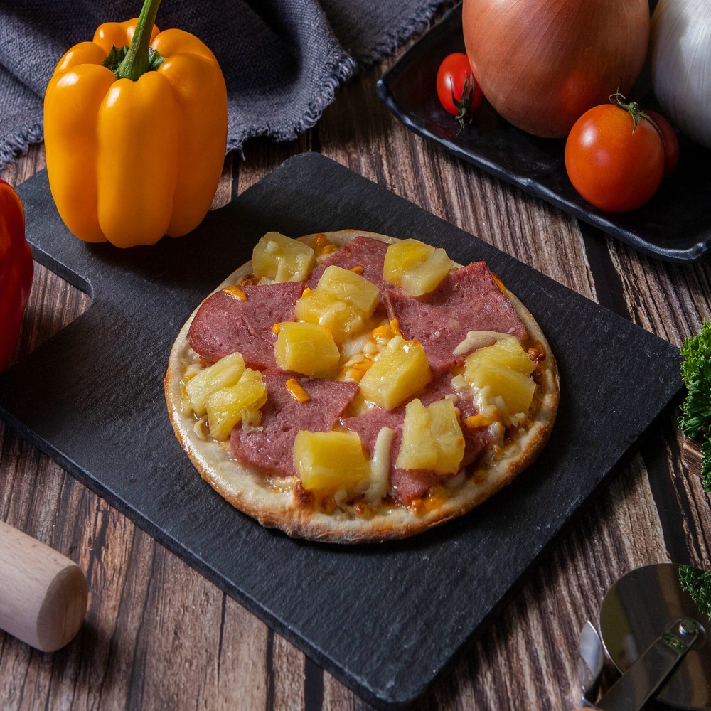 經典道地美式風味,必點必吃的夏威夷口味。風味濃厚的培根和清新的鳳梨,再撒上香濃的莫扎瑞拉乾酪和濃厚的切達乳酪,完美搭配在酥香清爽的薄餅皮上。酸中帶甜的鳳梨,與台灣豬培根完美融合,獨特手作揉製麵糰烘烤成薄脆的餅皮,咀嚼麵皮時同時能品嚐到番茄香氣與鳳梨的酸甜滋味,絕妙的平衡風味,每一口都彷彿夏天的陽光和活力,台灣最受歡迎的口味之一,酸甜鹹香,老少咸宜。