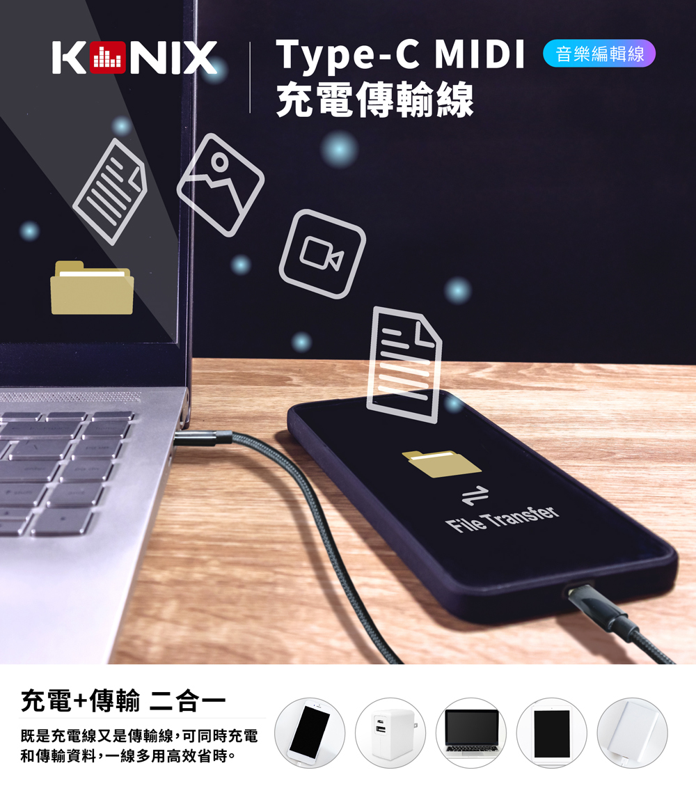【KONIX】USB MIDI音樂編輯線 (Type C 轉 Type C )資料傳輸、快速充電