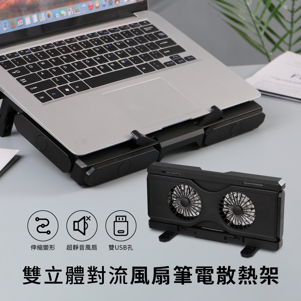 筆電散熱架的最佳選擇,強力雙大風扇設計,立體對流大風量,黑科技般的降溫散熱效果,輔以三段墊高支架,可調整最佳使用角度,完美支援筆記型電腦長時間使用、打遊戲。伸縮變形設計,可適用10~17吋的筆記型電腦,體積縮小收納不占空間,可輕鬆放進筆電收納包中。