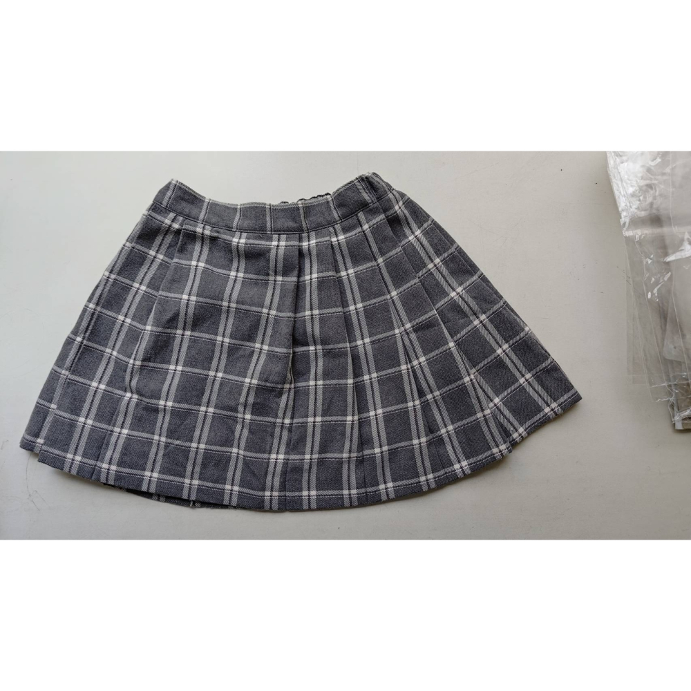 【二手良品中古衣】190號女寶女童110碼半身裙格子灰格百摺裙側拉鍊後鬆緊有內裡不透光