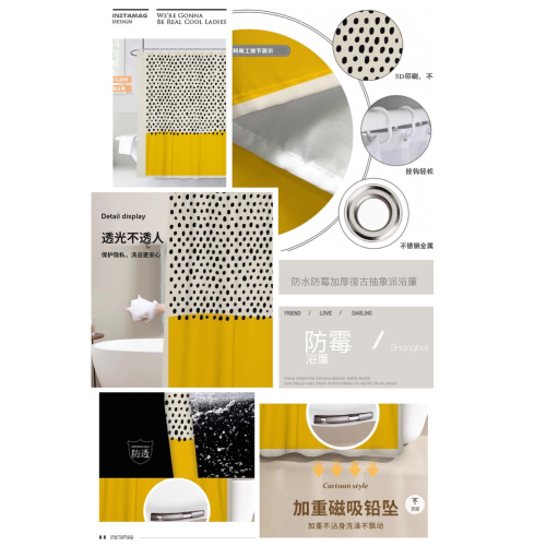 高質感高品質浴簾/防水防霉加厚/黑點黃色療癒系/普普風/抽象派/療癒色浴簾/不透光安全感