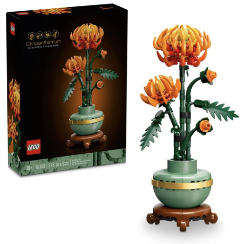 抽空休息,拼砌給大人的 LEGO® Icons 菊花(10368)花卉飾品拼砌盒組。菊花是傳統藝術中非常受歡迎的主題,屬於人稱「花中四君子」的 4 種經典美麗植物之一並代表著秋天。盡情享受正念拼砌活動,或將這款能長久保存的花卉擺飾送給親友-這是適合任何日子的完美送禮點子。 這款精緻複製模型有可擺動的葉子與花瓣,刻劃了含苞待放、綻放和盛開的鮮豔橘色花朵,並配有含金色飾帶的粉綠色花盆,擺在仿木底座上。此模型菊花容易組裝,是適合任何空間的高雅擺飾,並能跟其他樂高花藝系列盒組(另售)一起展示。 藉由一系列有啟發性、專為大人設計的樂高創意拼砌盒組發現放鬆的空間。LEGO Builder 應用程式提供數位版拼砌說明。 拼砌式菊花花卉飾品-用給大人的 LEGO® Icons 菊花拼砌盒組享受美好的休息時間,或跟親朋好友共同進行正念活動 盒裡有什麼-此創意拼砌盒組包含所有必需品,讓你能製作菊花、含金色飾帶的粉綠色花盆,以及仿木底座