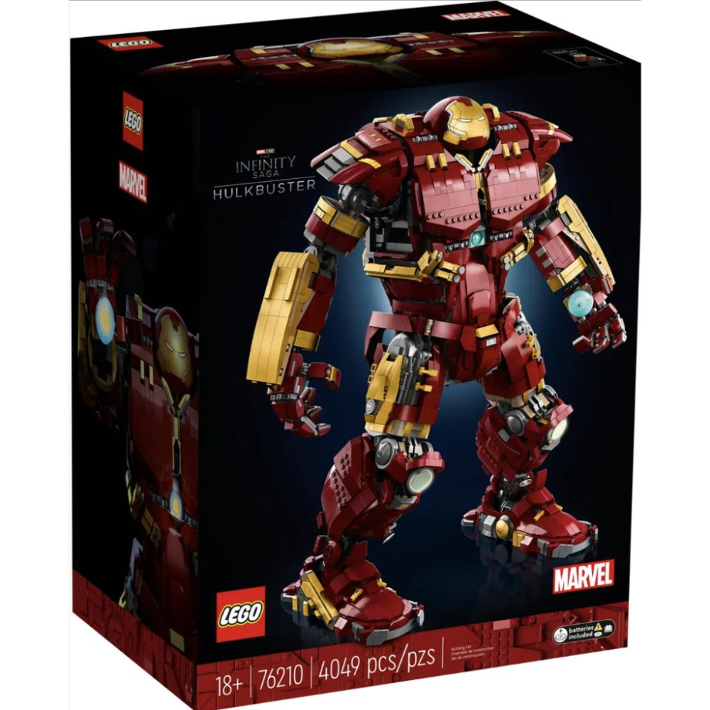 LEGO® Marvel Hulkbuster(76210)刻劃了漫威工作室《復仇者聯盟 2:奧創紀元》中,浩克毀滅者 MK44 的龐大尺寸與威力。這款有挑戰性、帶來成就感的模型直立高逾 52 公分,包含 4,049 個零件,專為大人粉絲設計。 真實的工程設計 此模型有許多精準還原自電影的特色。在暗紅色裝甲與精心設置的金色板件裡有著寬敞的駕駛艙,LEGO Marvel Iron Man Figure(76206,另售)可在裡面控制重型裝甲。此盒組也包含資訊解說牌與東尼史塔克人偶。 給大人的樂高積木組合 此模型出自一系列種類眾多、給大人的 LEGO Marvel 盒組。