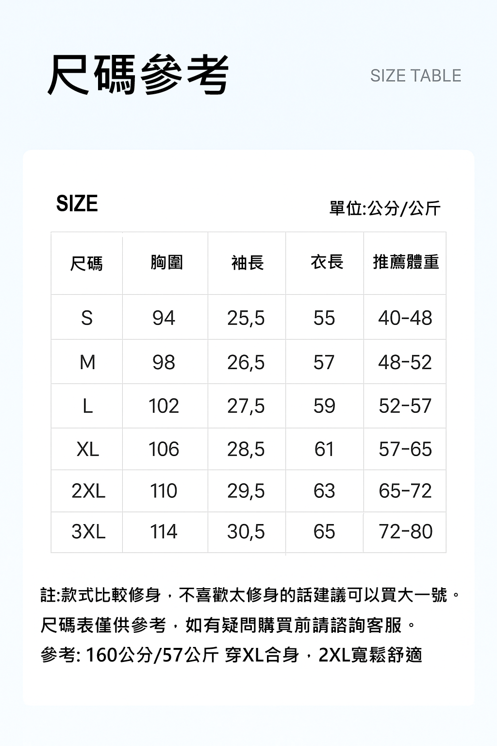 📏 尺寸:XL / 2XL/3XL(偏小版型,選購前可參考尺寸表)