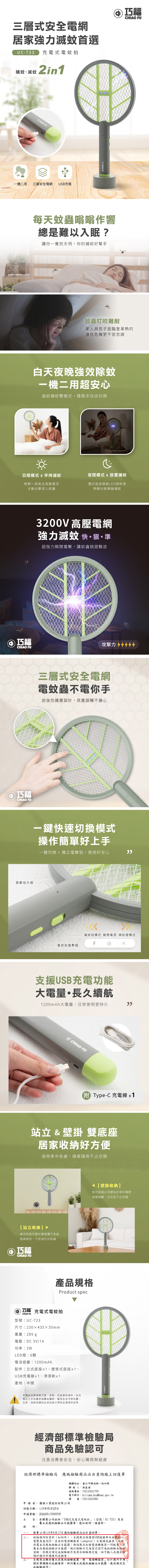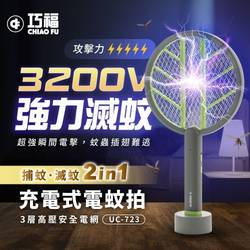 【7-ELEVEN 門市團購】巧福 充電式電蚊拍/捕蚊拍 (手持+直立+壁掛) UC-723